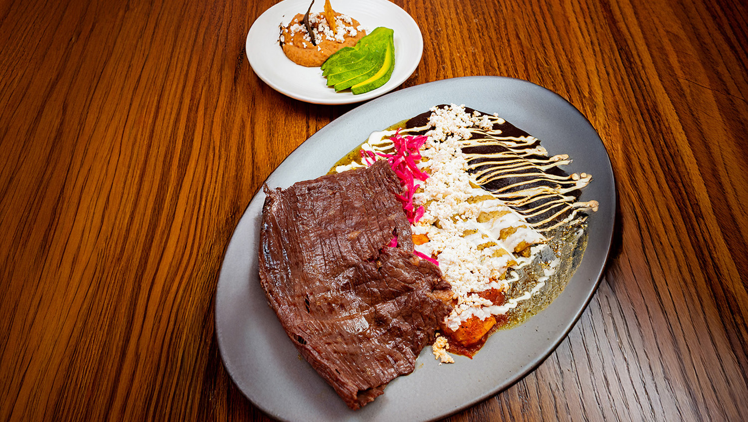 En salsa verde con cecina Yecapixtla, queso Oaxaca gratinado, aguacate, crema, cebolla morada y chile … Leer más